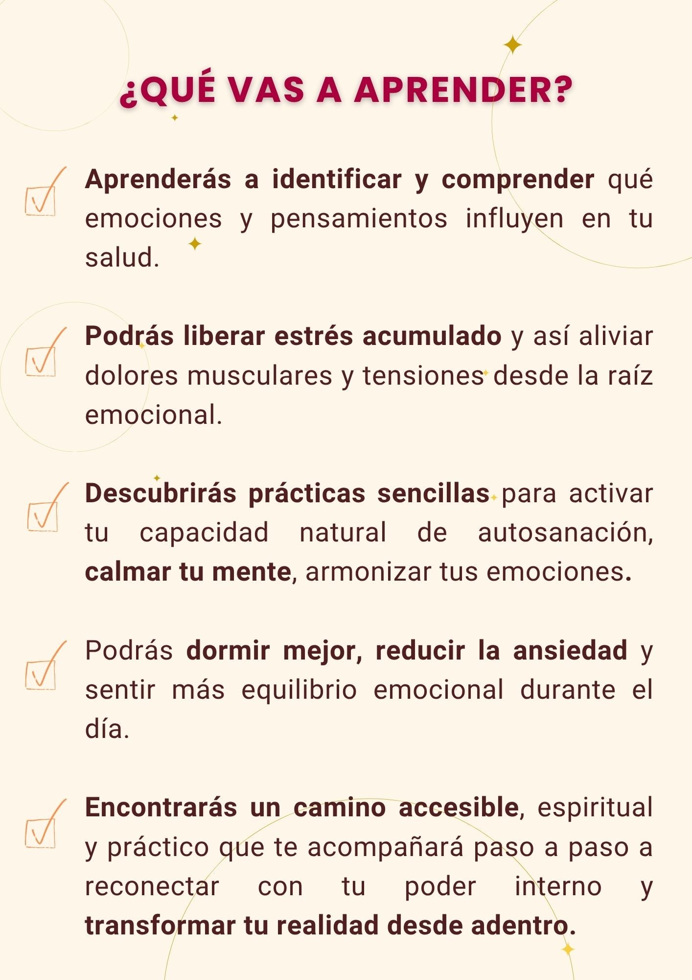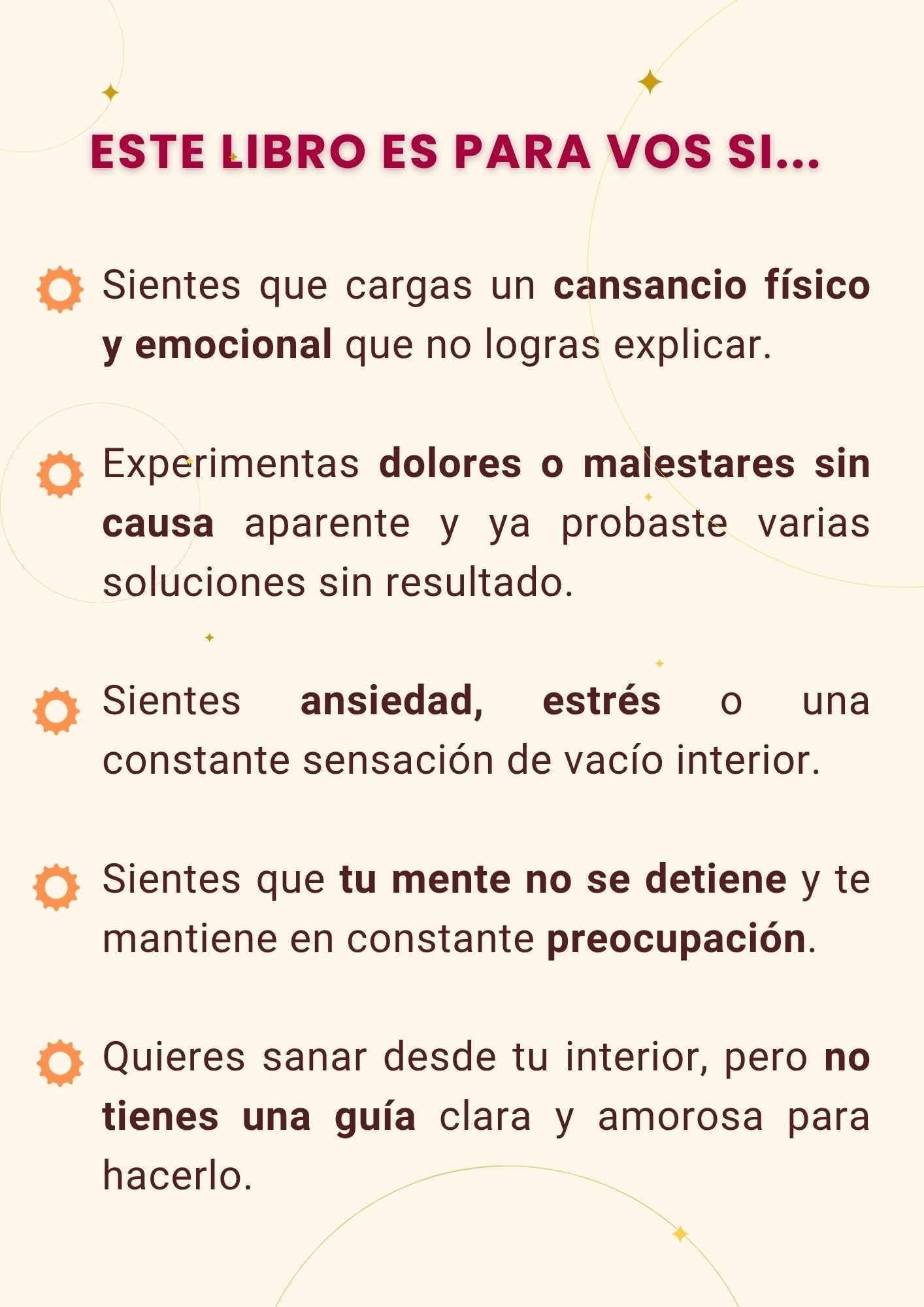 No, para nada. Este libro fue creado precisamente para acompañarte desde cero. Te llevará paso a paso a comprender cómo tu mente, tus emociones y tu energía trabajan juntas para crear tu bienestar.